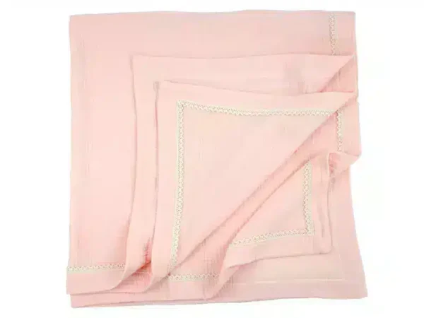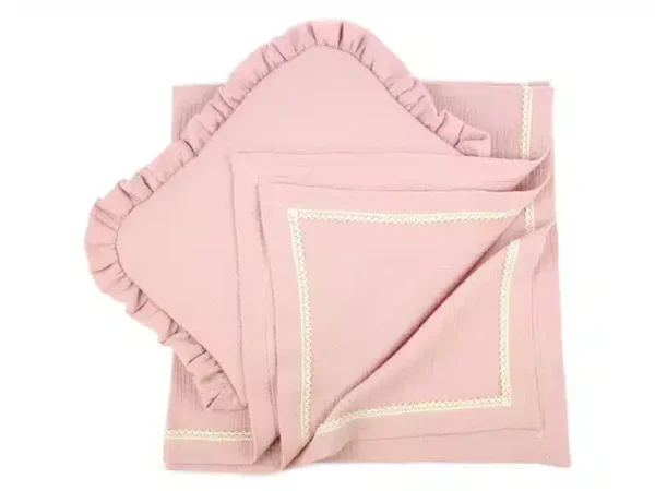 Kocyk Otulacz muślinowy letni z koronką Róż retro