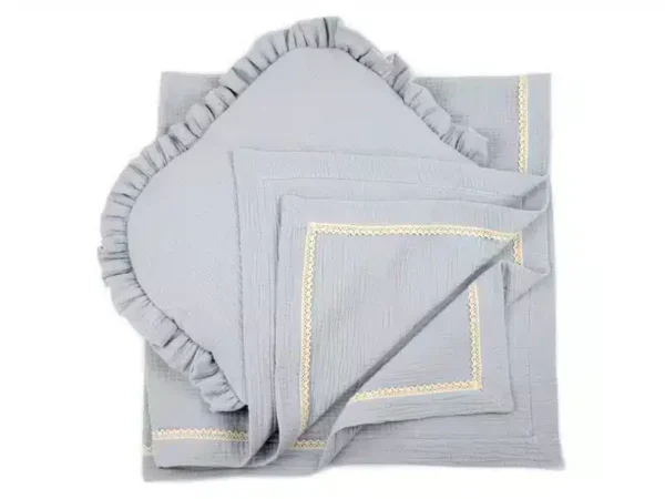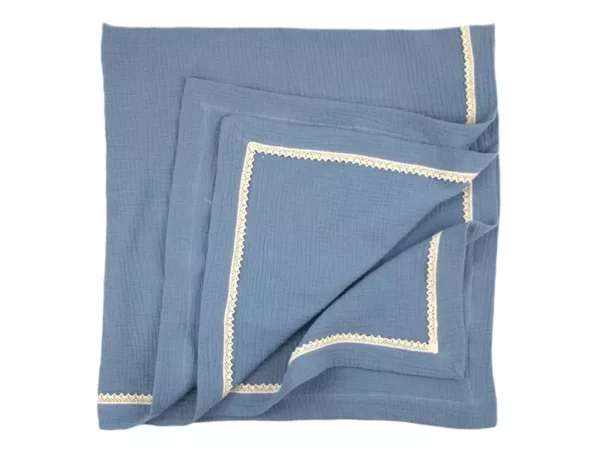 Kocyk Otulacz muślinowy letni z koronką Szaroniebieski