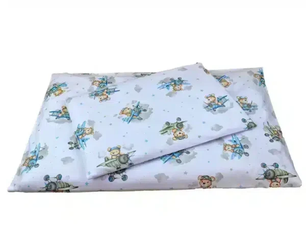 KOMPLET POŚCIELI BAWEŁNIANEJ 100X160 wzór mały miś samolot niebieski