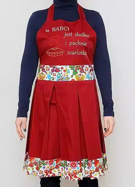 - Fartuch damski posiada ozdobny szeroki pas w tali, który doskonale podkreśli kształty każdej pani domu. .