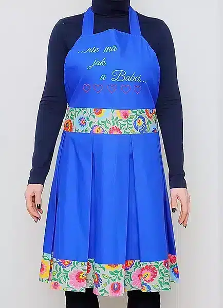 - Fartuch damski posiada ozdobny szeroki pas w tali, który doskonale podkreśli kształty każdej pani domu. .