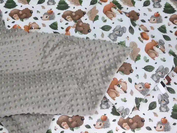 - Materiał: 100% bawełna + Minky 400 g/m²
