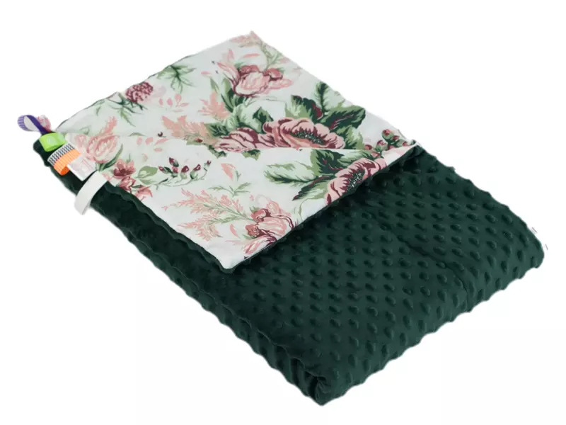 - Dwustronny z jednej strony puszyste Minky (400 g/m²), z drugiej oddychająca bawełna najwyższej jakości