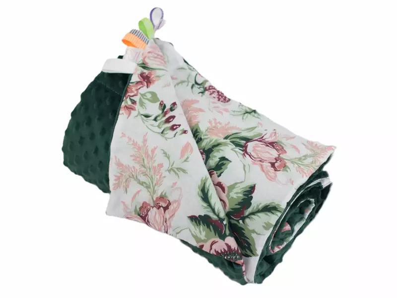 Kocyk MINKY bawełna Róża Pudrowa Zieleń Butelkowa