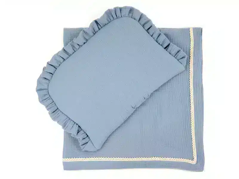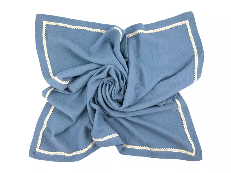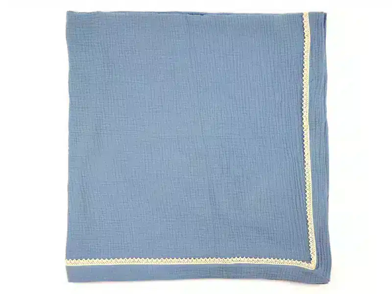 Kocyk Otulacz muślinowy letni z koronką Szaroniebieski
