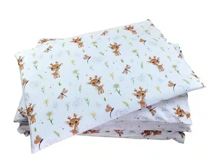 Komplet pościeli 100×160 cm doskonale sprawdzi się dla dzieci w wieku przedszkolnym i wczesnoszkolnym. Idealny do łóżek dziecięcych, zarówno w domu, jak i placówkach opiekuńczych.