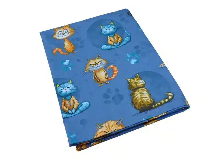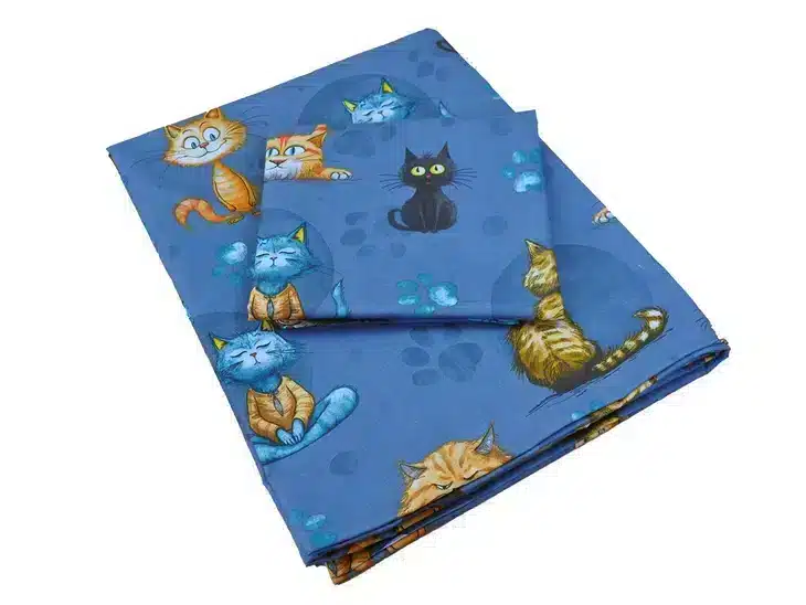 KOMPLET POŚCIELI BAWEŁNIANEJ 100X160 wzór kot granatowy