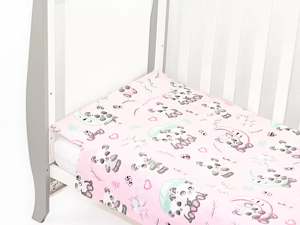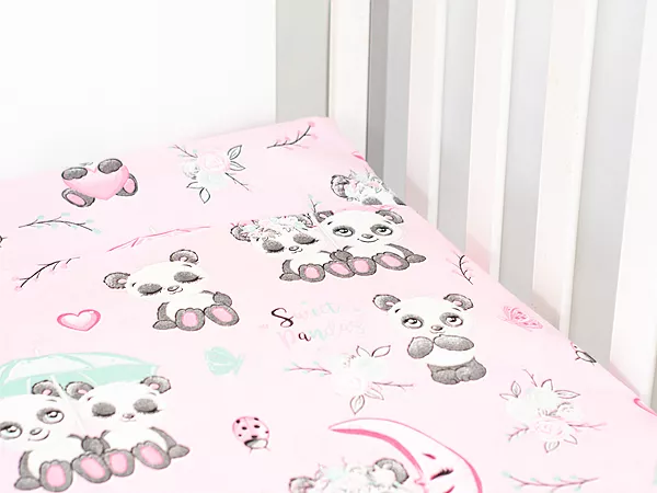 KOMPLET POŚCIELI BAWEŁNIANEJ wzór panda różowa