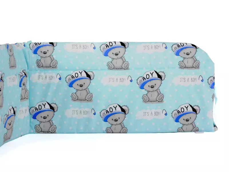 Ochraniacz do łóżeczka 30x180cm bawełniany Miś Boy niebieski