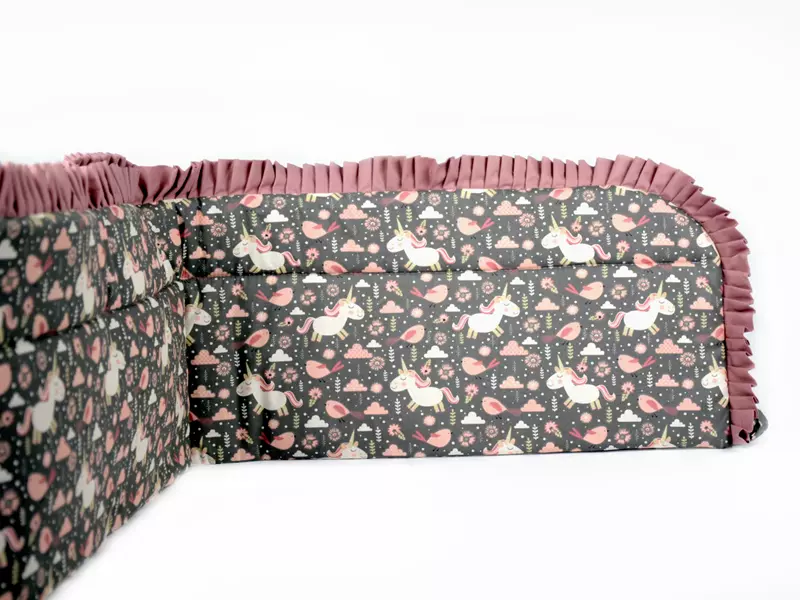 • Dekoracyjna falbanka – subtelna, składana, dopasowana kolorystycznie do ochraniacza