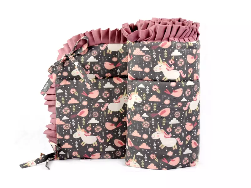 Ochraniacz z falbanką do łóżeczka 30x180cm bawełniany Jednorożec Brązowy