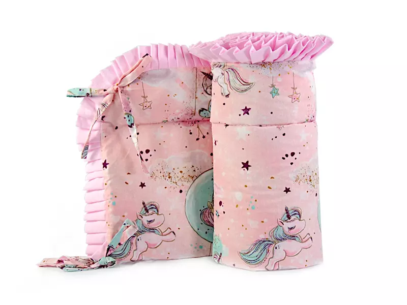 Strona główna » Sklep » Ochraniacz z falbanką do łóżeczka 30x180cm bawełniany Jednorożec Różowy