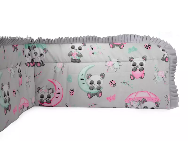 Ochraniacz z falbanką do łóżeczka 30x180cm bawełniany Panda