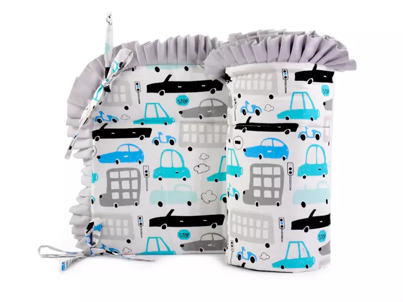 Ochraniacz z falbanką do łóżeczka 30x180cm bawełniany Samochody Szare