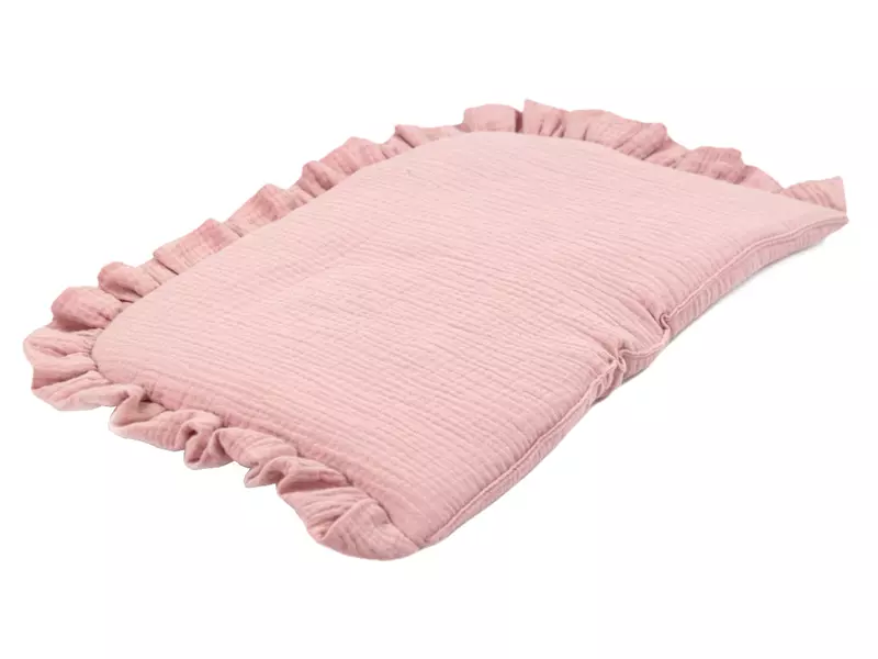 Poduszka do wózka muślinowa z falbanką róż retro
