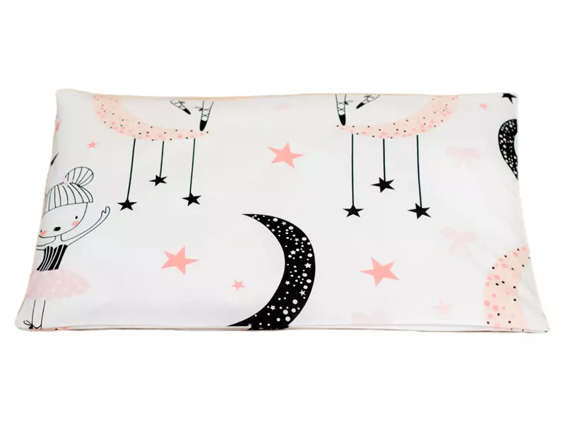 Antyalergiczne wypełnienie poduszki jest miękkie i sprężyste. Poduszka płaska nie posiada zamka, jest bezpieczna dla niemowlęcia.