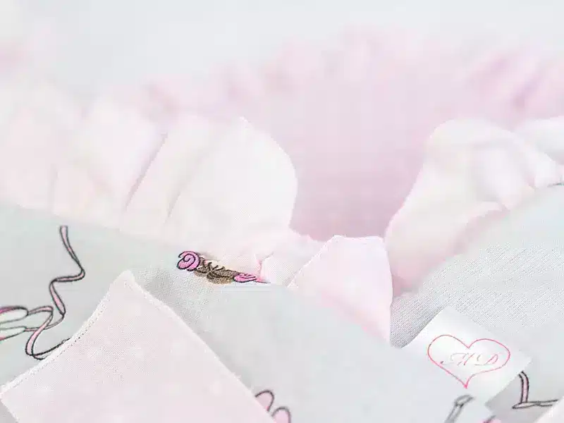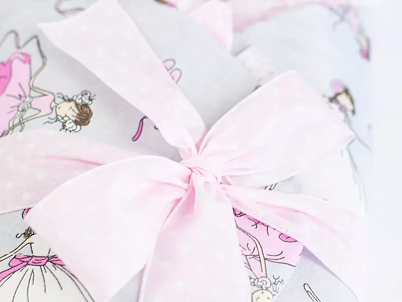 Dzięki zastosowanemu rzepowi oraz ozdobnej szarfie, rożek nie tylko prezentuje się estetycznie, ale również wspiera rozwój dziecka – poprzez naukę wiązania kokardki maluch ćwiczy motorykę małą, co może pomóc np. w nauce wiązania butów.