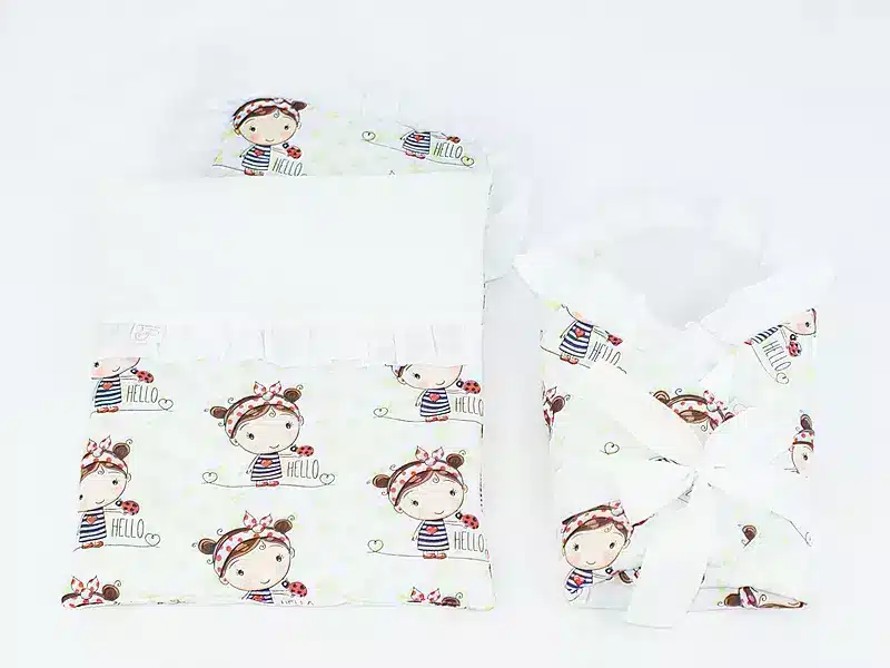 Pościel dla lalek – zestaw z rożkiem, kołderką i poduszką