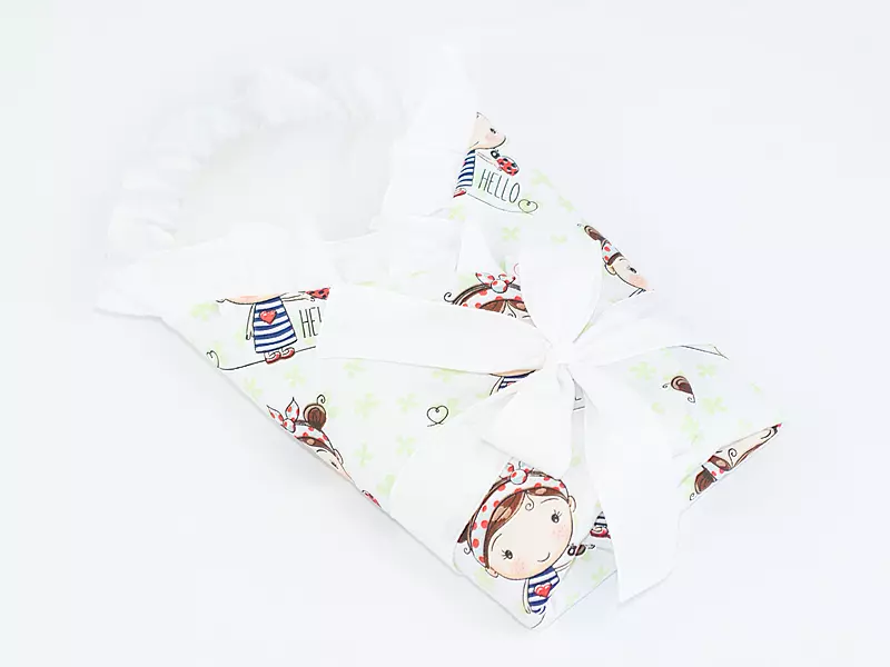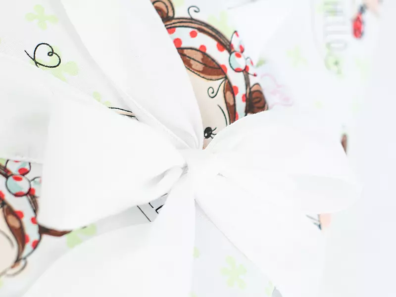 Dzięki zastosowanemu rzepowi oraz ozdobnej szarfie, rożek nie tylko prezentuje się estetycznie, ale również wspiera rozwój dziecka – poprzez naukę wiązania kokardki maluch ćwiczy motorykę małą, co może pomóc np. w nauce wiązania butów.