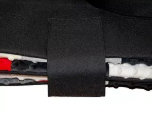 Dzięki zastosowanemu rzepowi oraz ozdobnej szarfie, rożek nie tylko prezentuje się estetycznie, ale również wspiera rozwój dziecka – poprzez naukę wiązania kokardki maluch ćwiczy motorykę małą, co może pomóc np. w nauce wiązania butów.