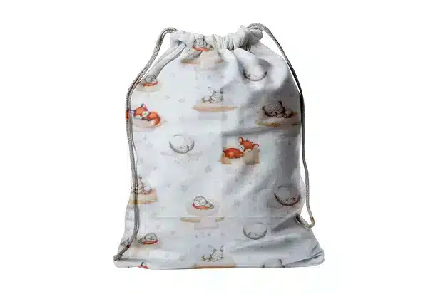 •  Worek bawełniany 25×30 cm (±2 cm), ściągany sznurkiem, z opcją personalizacji haftem