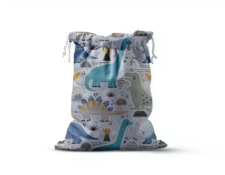 Worek na pościel 50×60 cm — bawełniany, w tym samym wzorze co pościel, ściągany sznureczkiem, z możliwością noszenia na ramieniu. Na worku można wyhaftować imię lub krótki napis (maksymalnie 2 słowa, obszar 200×200 mm).