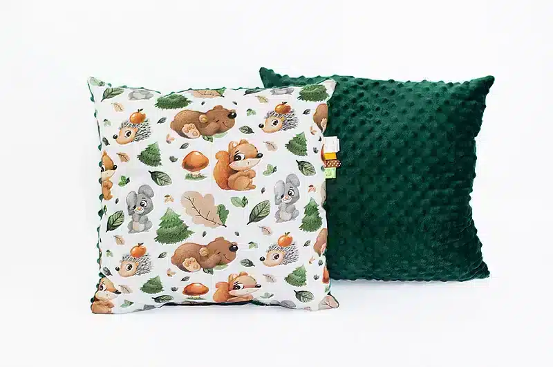Poszewka 40×40 cm — wykonana z gęstej bawełny, oddychająca, zapinana na kryty zamek.