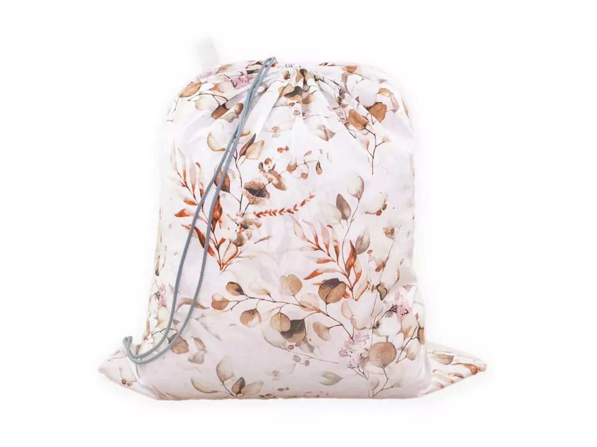 Worek na pościel 50×60 cm — bawełniany, w tym samym wzorze co pościel, ściągany sznureczkiem, z możliwością noszenia na ramieniu. Na worku można wyhaftować imię lub krótki napis (maksymalnie 2 słowa, obszar 200×200 mm).