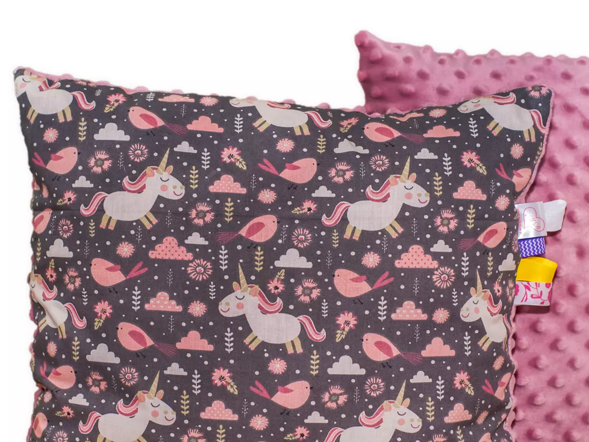 • Poszewka 40×40 cm — wykonana z gęstej bawełny, oddychająca, zapinana na kryty zamek.
