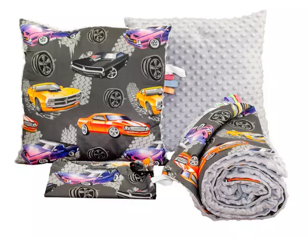POŚCIEL DO PRZEDSZKOLA wzór szary i czarne auta