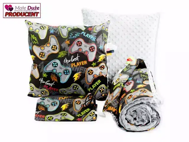 Worek na pościel 50×60 cm — bawełniany, w tym samym wzorze co pościel, ściągany sznureczkiem, z możliwością noszenia na ramieniu. Na worku można wyhaftować imię lub krótki napis (maksymalnie 2 słowa, obszar 200×200 mm).