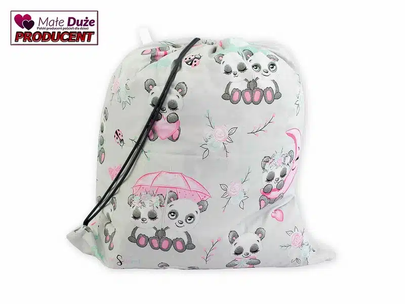 Worek na pościel 50×60 cm — bawełniany, w tym samym wzorze co pościel, ściągany sznureczkiem, z możliwością noszenia na ramieniu. Na worku można wyhaftować imię lub krótki napis (maksymalnie 2 słowa, obszar 200×200 mm).