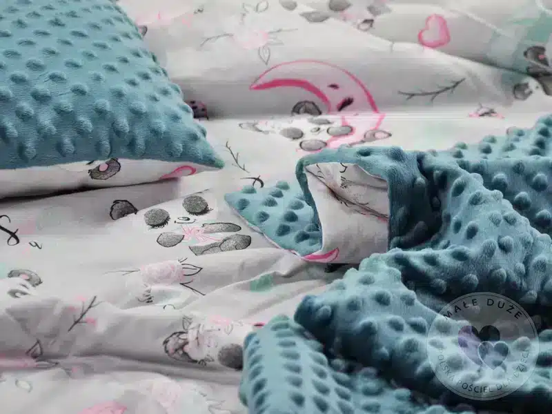 - Materiał: 100% bawełna + miękka dzianina minky 400 g/m²