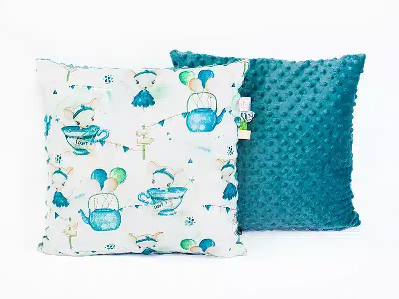 • Poszewka 40×40 cm — wykonana z gęstej bawełny, oddychająca, zapinana na kryty zamek.