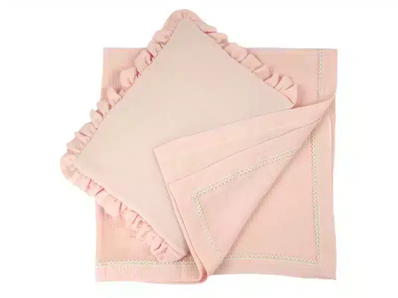 - kocyk muślinowy z koronką o rozmiarach 100×100 cm