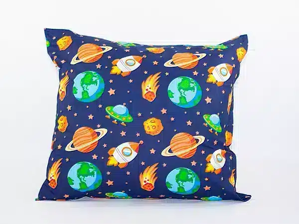 Miękka poszewka na poduszkę o wymiarach 40×40 cm wykonana w 100% z certyfikowanej bawełny to doskonały wybór dla dzieci w każdym wieku – do przedszkola, żłobka, domu czy w podróży.