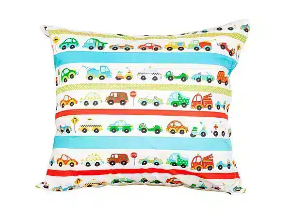 Miękka poszewka na poduszkę o wymiarach 40×40 cm wykonana w 100% z certyfikowanej bawełny to doskonały wybór dla dzieci w każdym wieku – do przedszkola, żłobka, domu czy w podróży.