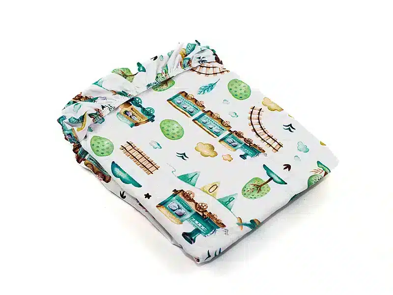 PRZEŚCIERADŁO BAWEŁNIANE Z GUMKĄ wzór ciuchcia