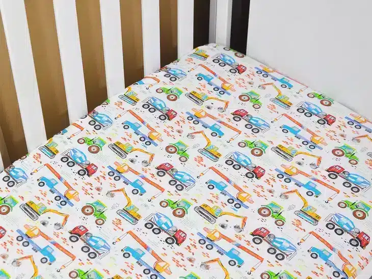 PRZEŚCIERADŁO BAWEŁNIANE Z GUMKĄ wzór koparki