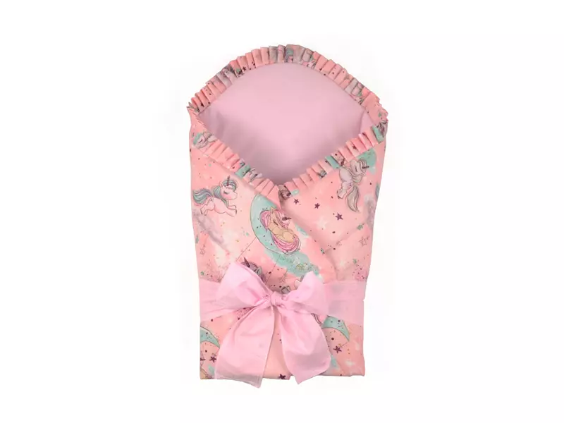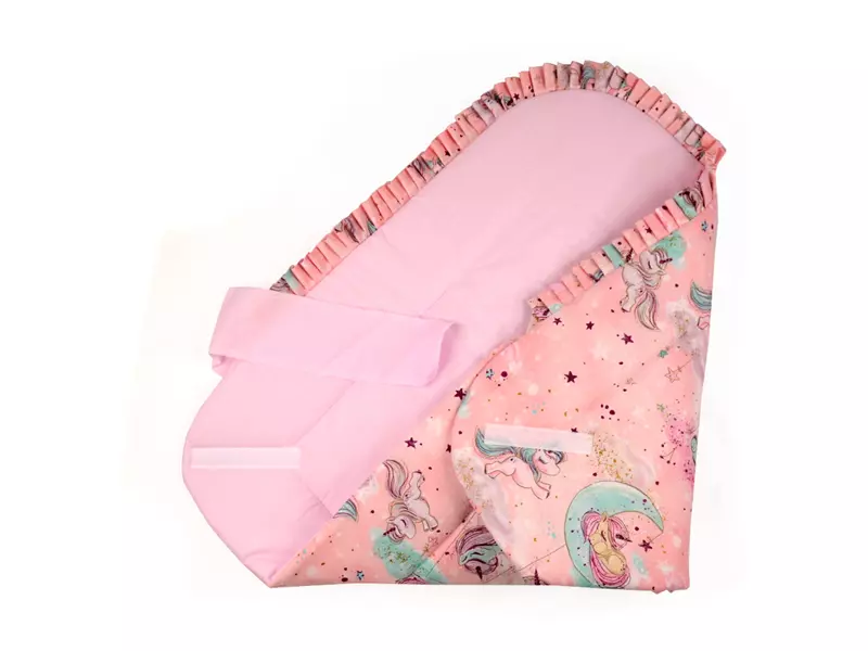 Rożek becik niemowlęcy z falbanką usztywniony Różowy Jednorożec
