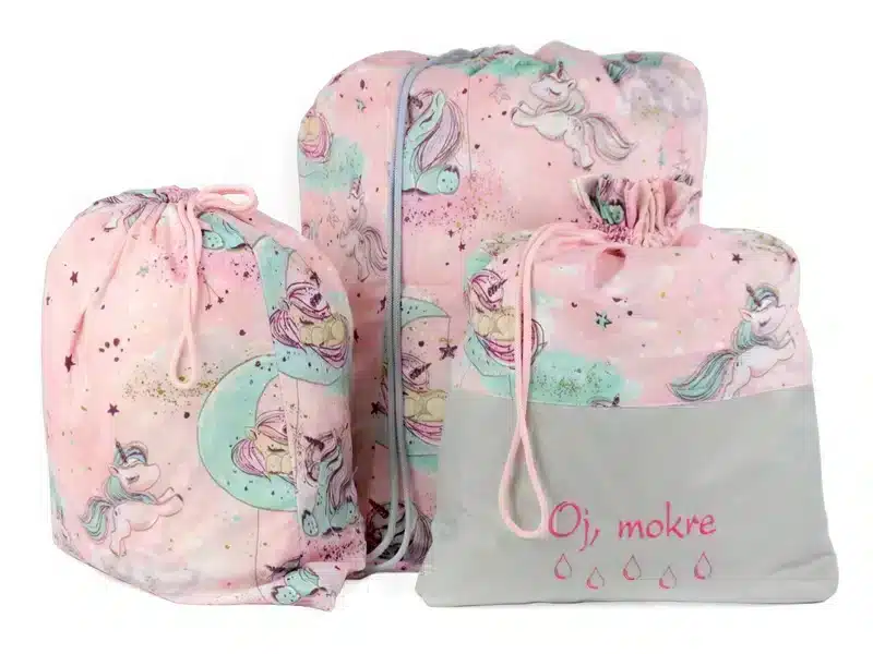 Worek na mokre ubrania Oj, mokre Jednorożce różowe