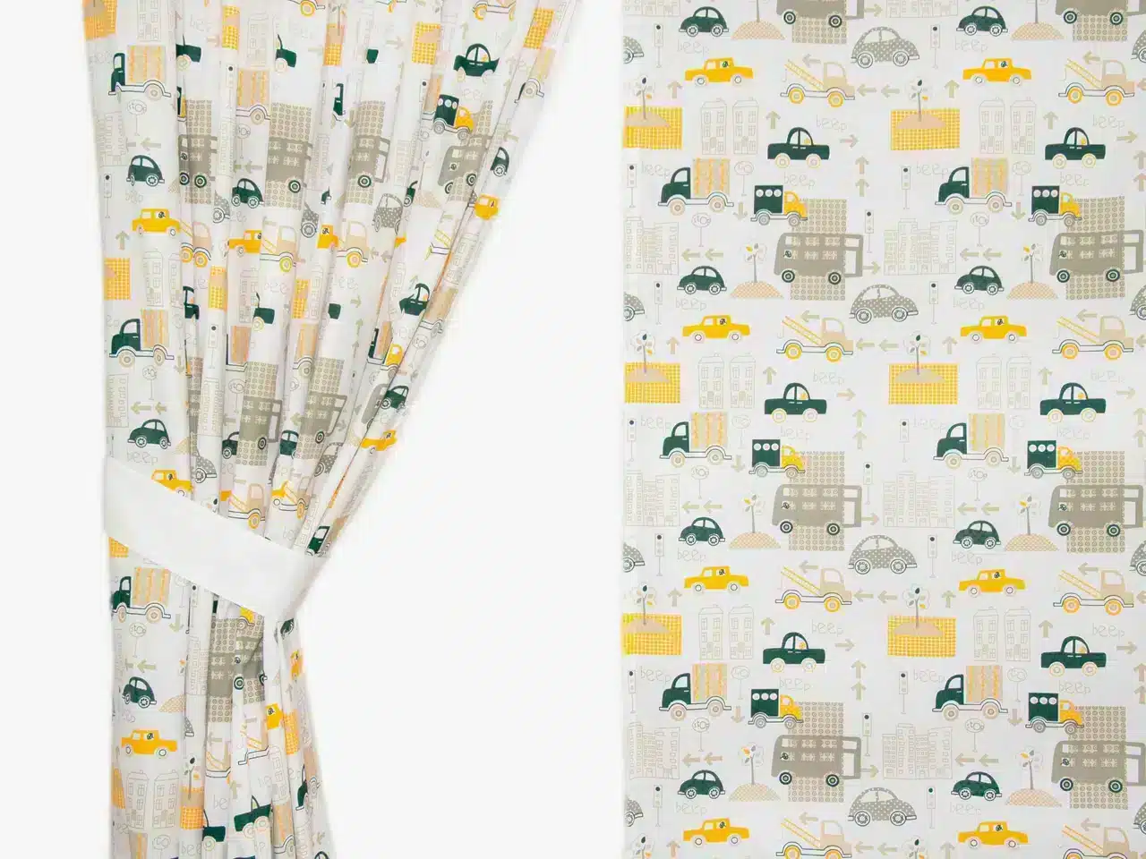 ZASŁONY DO POKOJU DZIECKA wzór żółty samochód