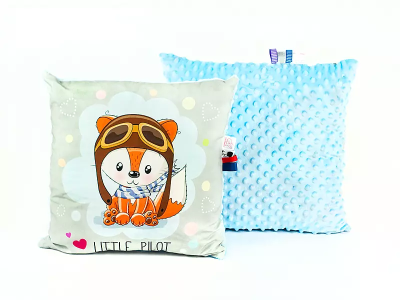 PODUSZKA MINKY DLA DZIECKA-PODUSZKA LISEK błękit