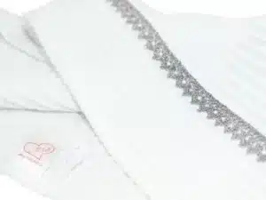Wykończenie: koronka bawełniana (biała lub ecru – losowo), wszyty wieszaczek